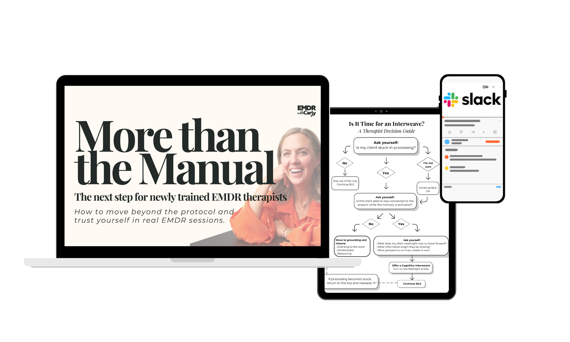 They will also be put in a slack group with me (Carly) and able to ask questions, have discussion about the course content, and connect with other EMDR therapists.